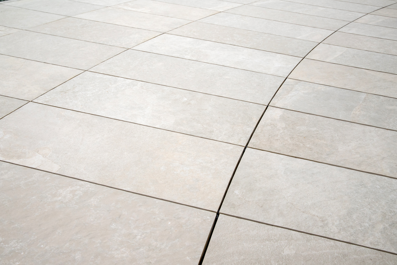 Large format tiles in concrete, stone and timber aesthetics. Engineered to interface with drainage channels.