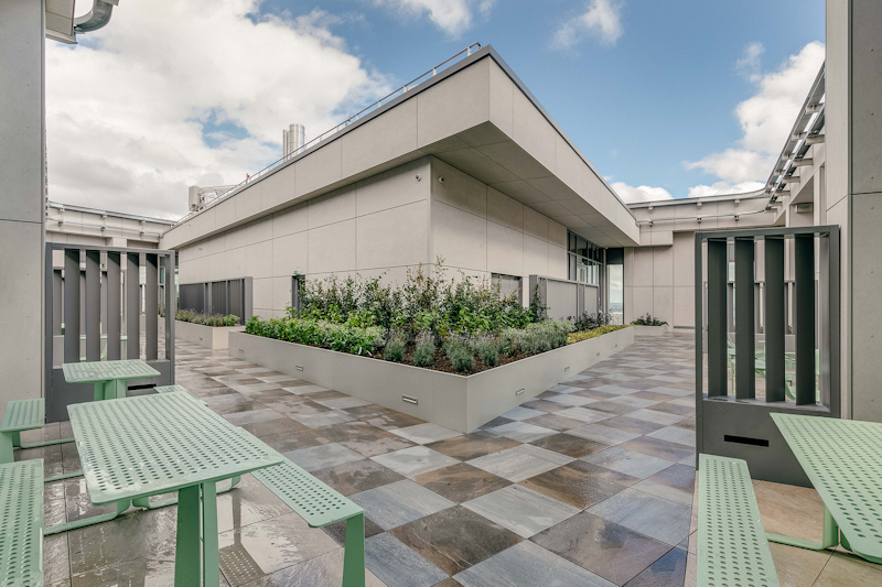 Choose from a curated palette of porcelain decking and tiles. Each surface is compatible with the Metal Planters support platform.
